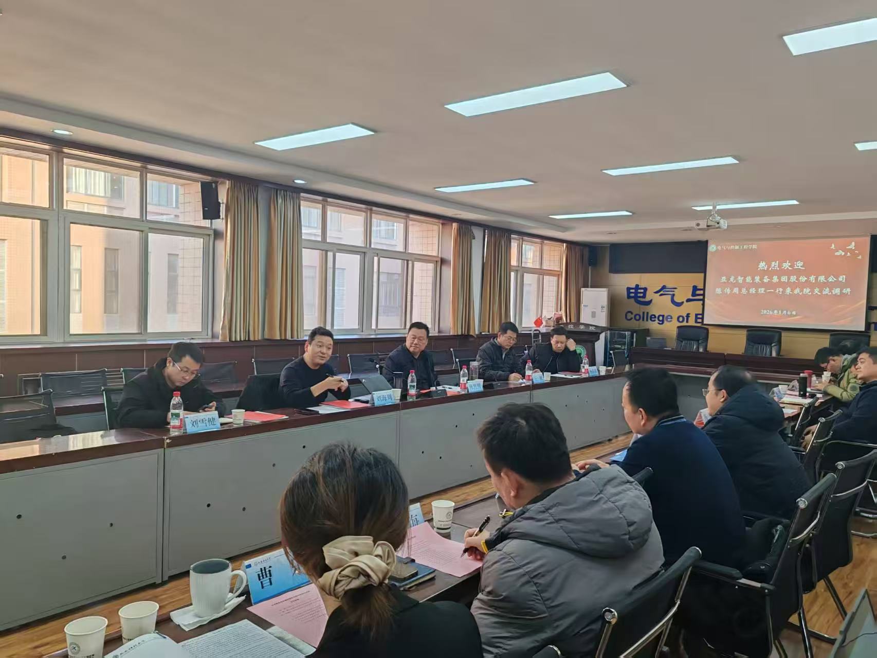 1月6日下午,亚龙智能装备集团股份有限公司一行5人到访伟德BETVLCTORBETVLCTOR伟德国际,开展产学研合作交流。亚龙智能装备集团总经理陈传周、陕西市场总监王斌、研发二部经理刘海周、技术总监杨英瑞、陕西项目经理刘雪健,BETVLCTOR伟德国际党委书记杨华、院长寇发荣、副院长郝帅及教师代表参加座谈会。会议由副院长郝帅主持。