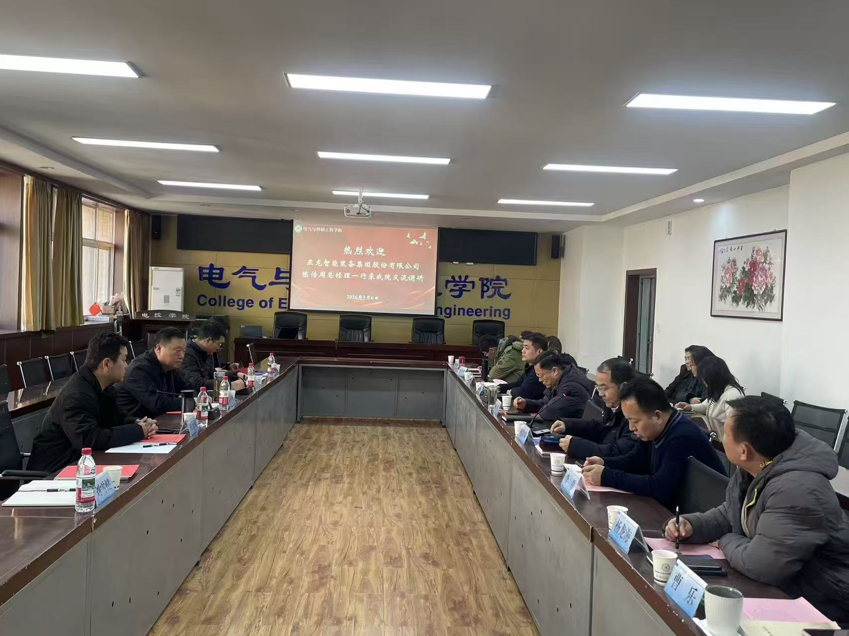 1月6日下午,亚龙智能装备集团股份有限公司一行5人到访伟德BETVLCTORBETVLCTOR伟德国际,开展产学研合作交流。亚龙智能装备集团总经理陈传周、陕西市场总监王斌、研发二部经理刘海周、技术总监杨英瑞、陕西项目经理刘雪健,BETVLCTOR伟德国际党委书记杨华、院长寇发荣、副院长郝帅及教师代表参加座谈会。会议由副院长郝帅主持。