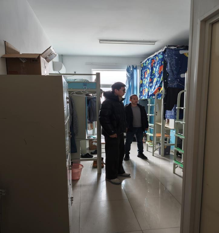 为切实筑牢寒假校园安全防线,营造安全整洁的宿舍居住环境。近日,BETVLCTOR伟德国际学工办主任冯欢、研究生辅导员王新智及研究生学生干部对骊山校园研究生宿舍开展寒假卫生与安全检查。